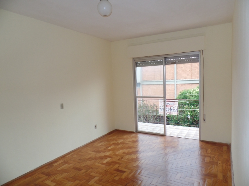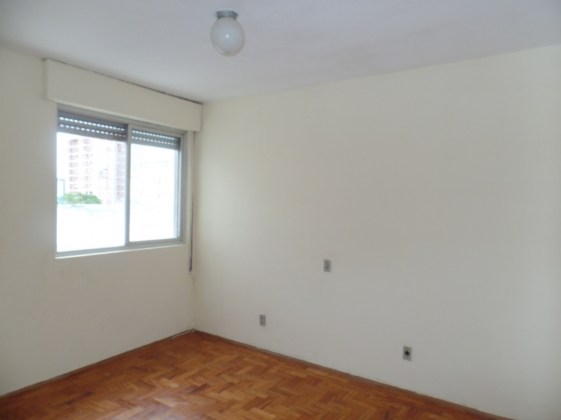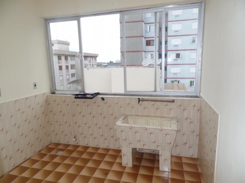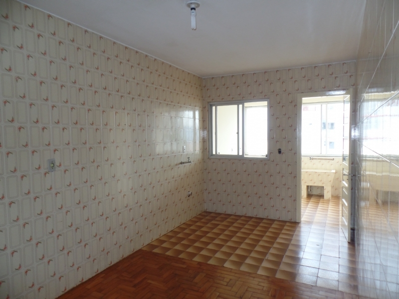 Dois dormitórios (um com sacada), sala, cozinha, banheiro social, área de serviço e um box de garagem.