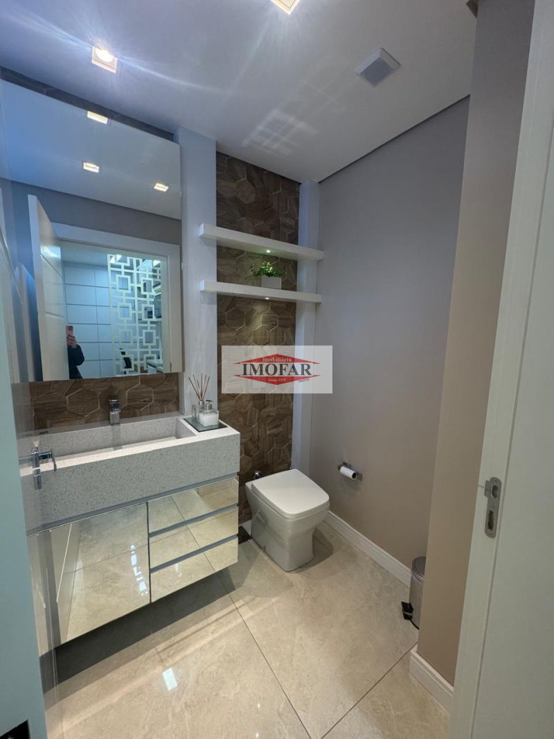 Iluminação completa, torneiras monocomando com aquecimento e rebaixo em gesso.