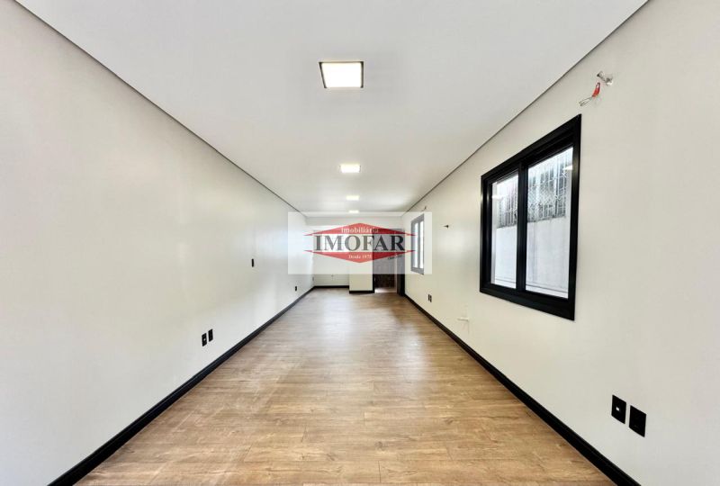 SALA COMERCIAL TERREA nova com banheiro e 1 Vaga de garagem, piso porcelanato, posição solar Norte. 40 m² Área privativa .