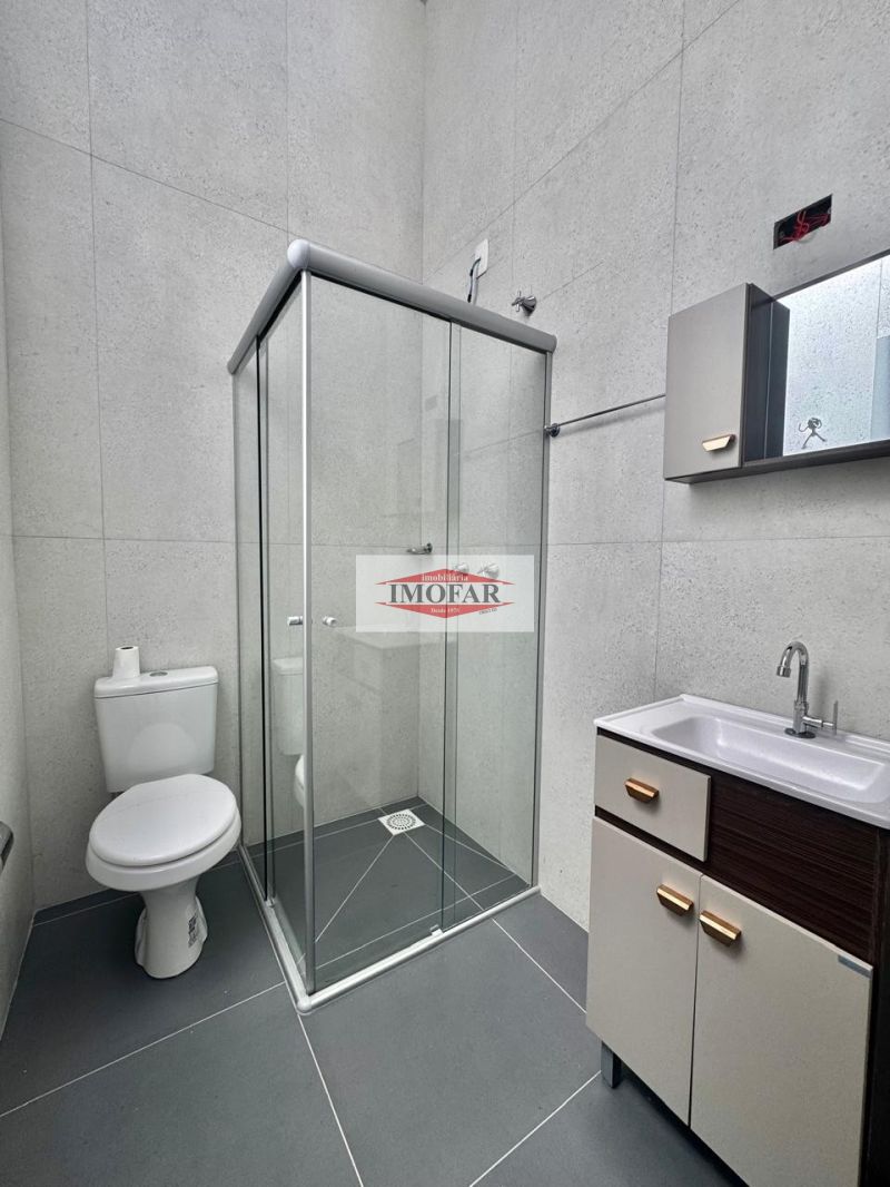 Casa geminada com 2 dormitórios (1 suíte com sacada), banheiro social com pé direito duplo, área de serviço com churrasqueira e garagem fechada para 1 veículo. Conta ainda com amplo espaço para depósito ou salão de festas.