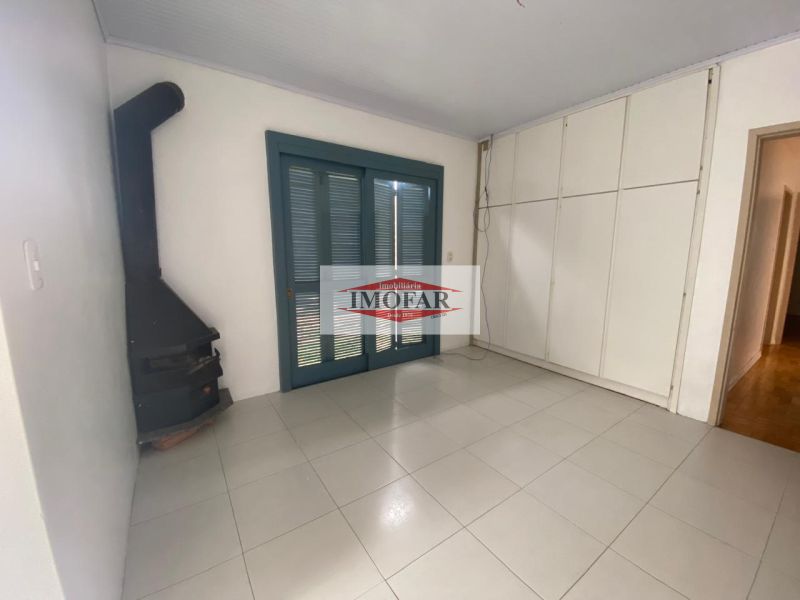 Casa residencial individual para locação, com três dormitórios, sala de estar, cozinha, sala de jantar com lareira, banheiro social, garagem e pátio cercado, oferecendo privacidade e segurança.